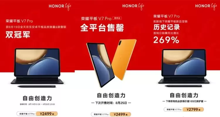 从以上几个方面来看,迅鲲系列的产品力过硬,且针对平板产品做了多方面适配优化,能够全方位满足用户在多场景下的使用需求,而首发搭载迅鲲1300T的荣耀平板V7 Pro也以优异的市场成绩对迅鲲系列芯片的强劲实力做出了佐证。在荣耀平板V7 Pro开售后,首销当日就拿下了全天京东安卓平板品类销量&销售额双冠军,同时刷新了线下荣耀平板新品首销历史记录,出色的产品体验受到了用户和媒体的一致好评。