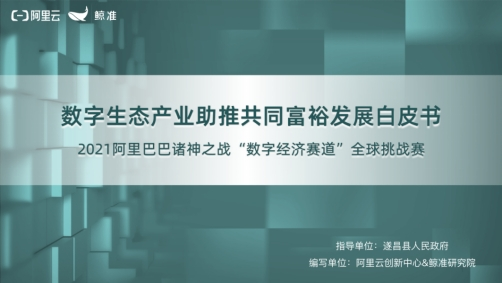 9月29日,由遂昌县人民政府指导,阿里云创新中心与鲸准研究院联合编写的《数字生态产业助推共同富裕发展白皮书》于2021阿里巴巴诸神之战“数字经济赛道”全球总决赛现场正式发布。