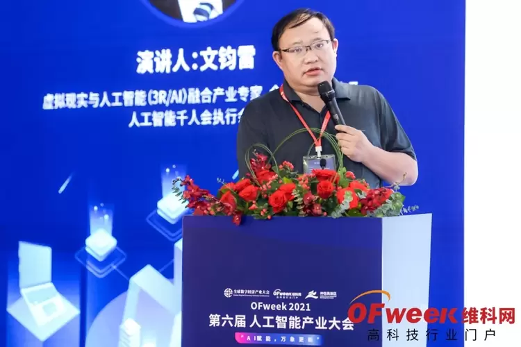虚拟现实与人工智能(3R/AI)融合产业专家,全球虚拟现实及人工智能千人会执行会长文钧雷率先为大家带来《虚拟现实与人工智能的创新建设》主题分享。文钧雷表示,在AI产业发展历程中,人工智能技术经历了推理期、知识期、机器学习期三大时期。随着人工智能技术的成熟,单点人工智能能力开始迅猛增?。