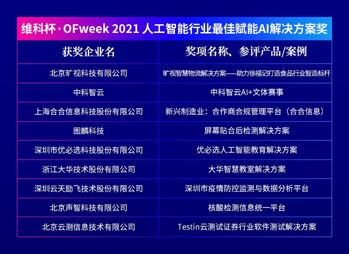 OFweek 2021人工智能行业评选获奖名单出炉!