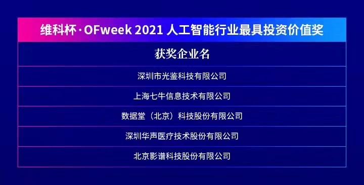 维科杯?OFweek 2021第六届人工智能行业最具投资价值奖