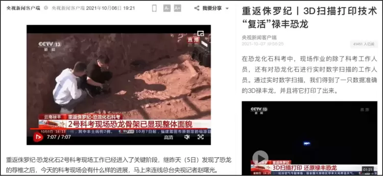 而最近,云南禄丰市的村民在进行绿化作业时意外发现了两具因大雨冲刷显露出来的恐龙化石骨架,中科院和当地恐龙化石保护中心紧急启动了抢救性发掘工作。为此,中央广播电视总台将目光聚焦到禄丰,精心打造了《重返侏罗纪》特别报道节目,带我们聆听远古的呼唤、探访史前生物的神秘世界。