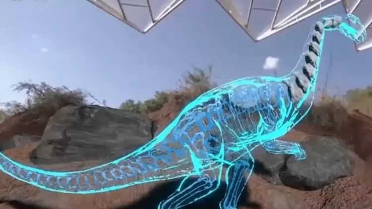 通过3D扫描复原禄丰龙,呈现酷炫有趣的AR影像,也提供了更为直观丰富的动态体验如纪录片数字展示等,是先进制造业助力古生物研究的完美体现。
