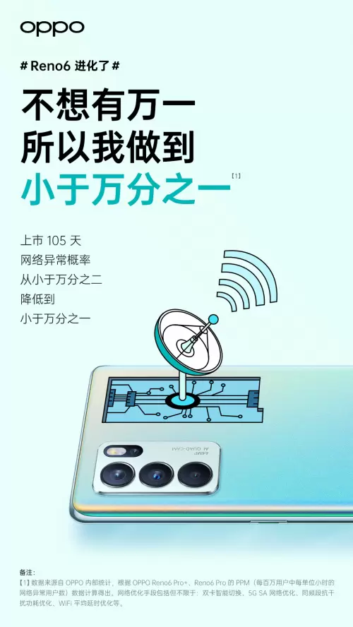 此外,OPPO Reno6通过二次进化,还提升了性能输出、影像拍摄体验,很多已经上手的用户直呼,越来越好用了。OPPO考虑到日常游戏和通信中,网络表现也是影响使用体验的关键一环,所以通过双卡智能切换、5G SA网络优化、同频段抗干扰功耗优化、WiFi平均延时优化带来更为通畅和稳定的网络体验,为日常使用保驾护航。