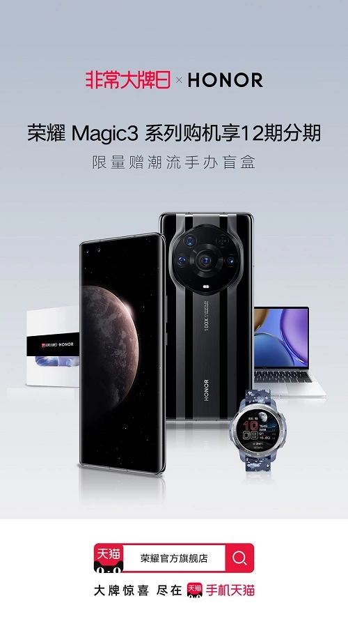 荣耀手机天猫大牌日12日启幕,购荣耀Magic3系列赢惊喜福利