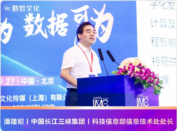 紧接着开讲的是中国长江三峡集团科技信息部信息技术处处长潘建初,潘总以《产业数字化典型案例介绍》为演讲主题,通过分享多个企业数字化实践案例,引出行业数字化发展进程中的难点与困局,针对相应解决方案展开深刻论述与探讨。