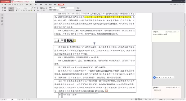 金山PDFforLinux专业版支持文本及图片的涂改、插入、删除、替换、旋转等操作;支持注释、插入书签、添加水印等功能。