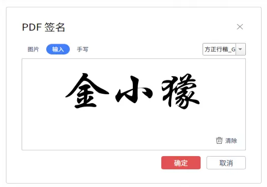 金山PDFforLinux专业版支持多种方式插入签名,如手写签名、输入签名、插入签名。