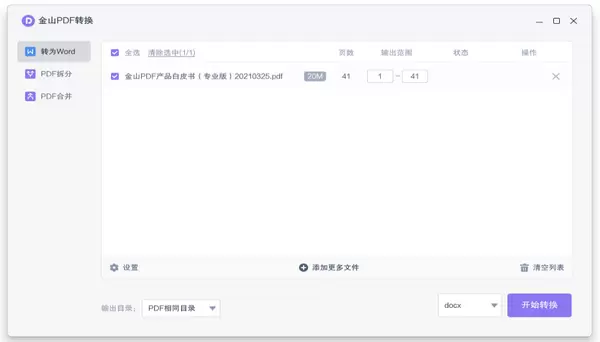 金山PDFforLinux专业版支持将PDF转换成Word、图片格式,还支持转换前进行拆分、合并、删除、提取、旋转、插入页面等多种功能。