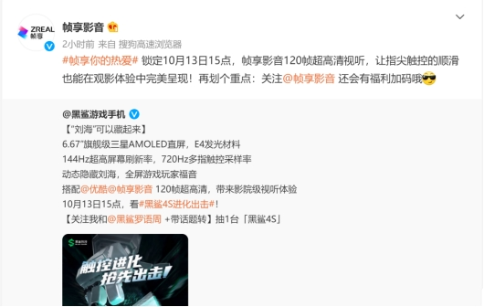 不仅游戏体验丝滑,黑鲨4S全系支持优酷ZREAL帧享120Hz模式