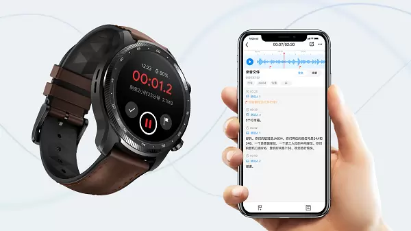 TicWatch Pro X 内置出门问问独家AI语音助手,“嗨小问”与谷歌原生“嘿小安”双唤醒词,支持查询路线、餐厅、酒店、查询日历、设置日程等,还支持“开始播放”“下一首”“停止播放”“我要买单”快捷口令。 同时,TicWatch Pro X 具有精准的语音转写功能,可用于流畅清晰的会议记录,准确率可达98%,并支持文本快速定位,自动提取关键词,完成会议纪要一键分享。
