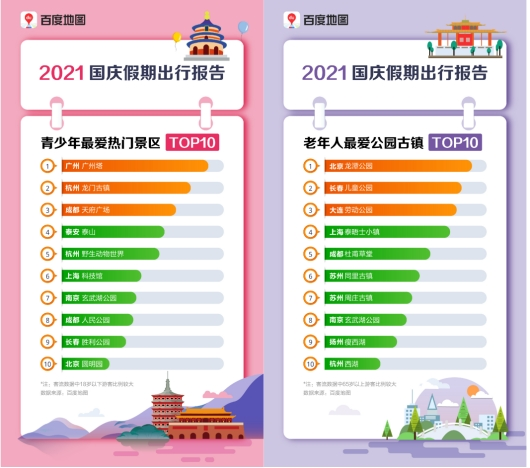 (2021百度地图国庆假期出行报告-公园古镇、热门景区)