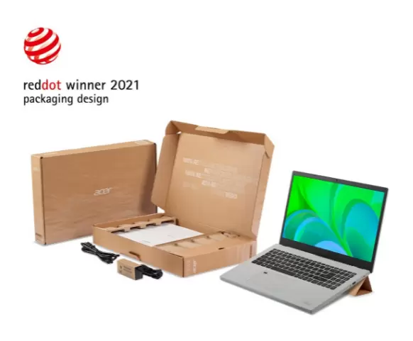 此次蜂鸟·未来 环保版可再生包装,采用100%可回收再生纸,且所有印刷品均使用大豆油墨,可自然分解不会污染环境,包装中的适配器挡板可作为笔记本支架使用,增加使用舒适度的同时让用户切身参与到环保行动中来; 对持续发展的追求是共通的, 以“促进环境和人类和谐的设计”为理念的红点奖,历来重视能够促进环保的设计,此次蜂鸟未来环保版包装的巧思设计与红点奖理念相契合,因此荣获2021红点包装设计奖,为宏碁的环保事业在添殊荣。