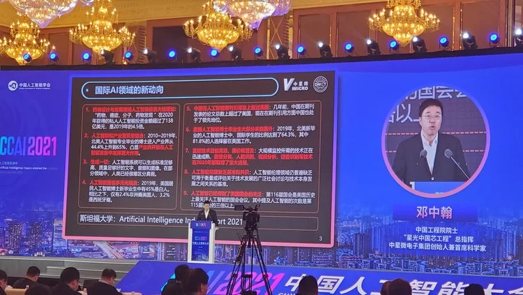 10月12日,2021中国人工智能大会在成都隆重举行。来自政府领导、业界专家等出席了大会,为人工智能的发展指引了方向。中国工程院院士、中星微电子集团创始人兼首席科学家邓中翰从芯片半导体技术面临的发展难题出发,就“后摩尔时代的AI技术展望“作分享。邓中翰还提出了后摩尔时代AI技术的三大悖论,即大数据悖论、认知决策悖论、云计算悖论。