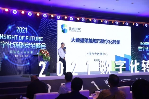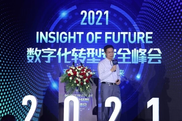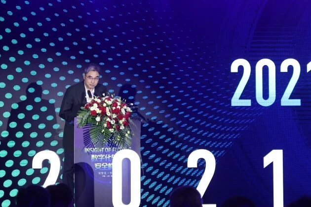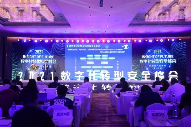 2021年10月12日, 2021 Insight of Future数字化转型安全峰会在上海盛大开幕。中国(上海)自由贸易试验区临港新片区党工委副书记吴晓华、上海临港经济发展(集团)有限公司副总裁徐斌、中共上海市委网络安全和信息化领导小组办公室网络安全处副处长张庆利、上海市经济和信息化委员会软件和信息服务业处副处长何炜到场做开幕致辞,东方卫视新闻主播于飞担任主持人。