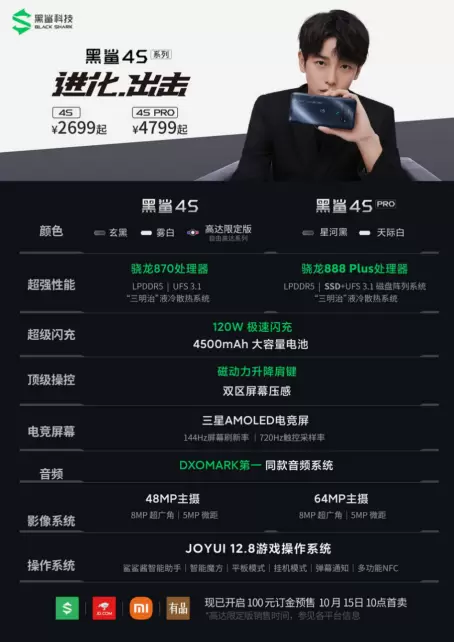 目前全新黑鲨4S系列游戏手机已经正式发布,将于10月15日正式开售,喜欢的玩家敬请关注黑鲨官方商城、黑鲨京东自营官方旗舰店、小米商城等官方渠道进行购买。