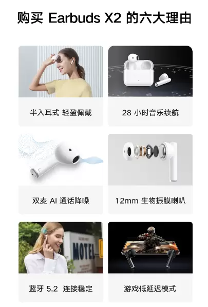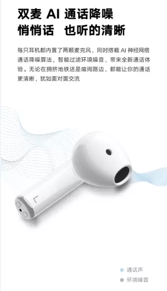 荣耀亲选Earbuds X2耳机加入双麦通话降噪,每只耳机内置两颗麦克风,配合DNN神经网络通话降噪算法,过滤噪音、增强人声。不管是身处嘈杂的地铁,还是人流密集的街道或公共场所,都可以安心打电话沟通。