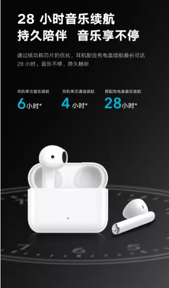 TWS耳机的续航一直是用户一大痛点,荣耀亲选Earbuds X2耳机通过低功耗芯片优化,配合充电盒可提供超过28小时的续航能力,耳机单次音乐播放也可达6小时。优质的佩戴效果,加上长续航,不管是长时间佩戴耳机,还是短期出差或者外出使用耳机,都将会带来舒适的使用体验。