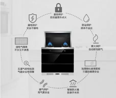 厨电产品最重要的就是安全性能,华迪诺集成灶在保证高性价比的基础上,在安全上也做了充分的考量,配备了八大安全防护功能,杜绝危险的发生,保障了您和家人的安全。