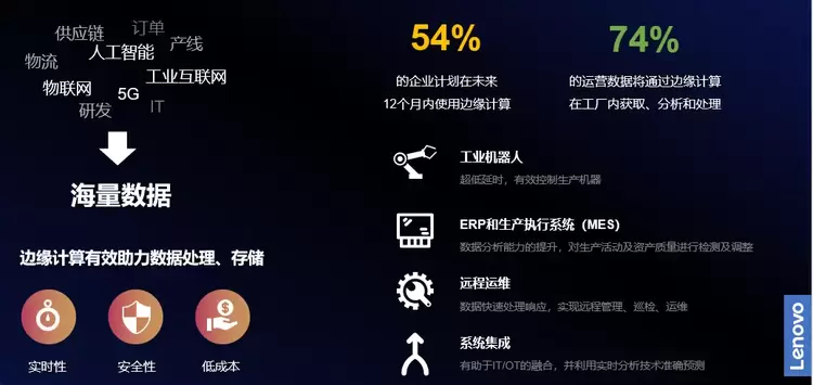 王磊表示,数字化转型与智能制造的趋势对联想来说是一个非常好的机会,联想能够将行业知识积累总结成先进的解决方案,赋能千行百业的转型升级。正因为有这样的优势,如今,联想是全球少有的“端-边-云-网-智”全要素覆盖的行业领导厂商。