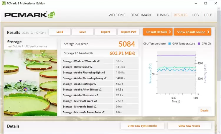 结合PCMark 8存储测试的RAW Result日志同HWiNFO64全程采集的数据,我们整理了一下实际应用中SSD的活动状态分析。