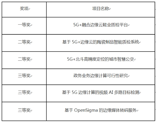 本次大赛由OpenSigma2.0提供业务部署环境,并与现网5G对接。本次大赛邀请到边缘计算领域产、学、研、社区等多位专家担当评委,对各参赛团队路演答辩和现场交互作品进行了严格的考评,最终共6支队伍荣获一、二、三等奖,其余队伍获优胜奖。获奖项目详情如下:
