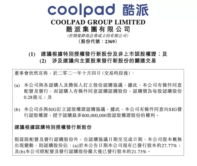 更值得一提的是,酷派此次获得的是SIG“新股认购”与“认股权证”的双重“加持”,这更加说明了SIG对于酷派未来长期成长性的看好。