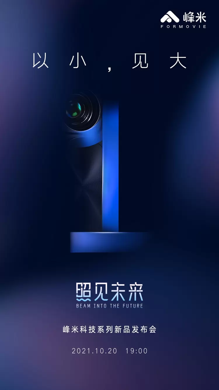 10月20日,激光投影行业引领者、小米生态链企业峰米科技即将召开以“照见未来”为主题的新品发布会。在倒计时1天之际,峰米官方再次放出全新海报,“以小,见大”的文案,配合一枚精致小巧的投影镜头,引人遐想。