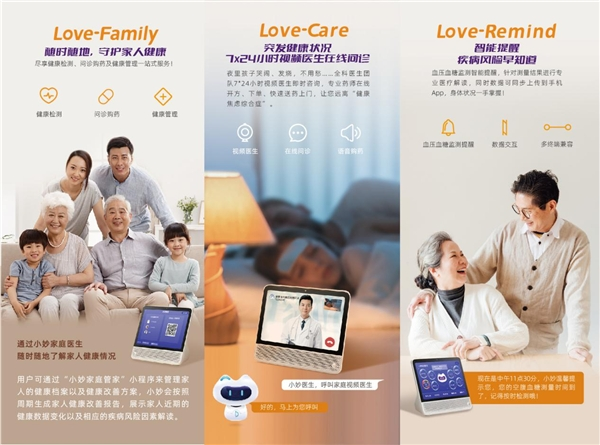 当用户在日常居家生活中有就医需求时,只需要通过简单的语音操作,“小妙医生”便会即刻拨打与医生的视频通话,帮助用户以最快速度获得医生指导;而通过与血压计、血糖仪等设备的数据共享,将给用户在线问诊提供监测数据依据。在问诊结束、获得医生指导建议后,用户还可以享受在线购药、送药到家、用药指导等服务,子女还可以进行远程协助家中患病老人与专业医生快速直联,解除外出工作时对老人身体健康的后顾之忧。