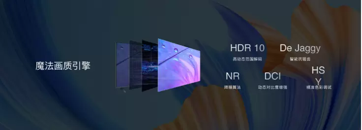 买大屏,首重音画。荣耀智慧屏X2配备了10.7亿色广色域全彩屏,高色深和92% DCI-P3广色域能够带来层次感丰富、细节细腻的画质表现。硬件决定了体验的起点,而软件则代表着终点。荣耀智慧屏X2搭载了备受好评的魔法画质引擎,特别是其中HDR高动态范围解码、NR降噪和DCI动态对比度等算法,能够显著优化画面表现,进一步发挥这块好屏的显示潜力。
