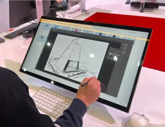图说:观众在展区体验无影一体机Pro版手绘功能