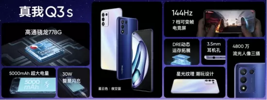真我Q3s:搭载神U骁龙778G 144Hz高刷7档变速