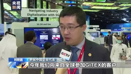 参展中国企业代表 刘嘉伟:今年我们向来自全球参加GITEX的客户,展现了我们在云、5G 、AI以及数字能源这些相关场景的一些解决方案。我们相信,这些解决方案将能更好地帮助,不光是中东地区,更是全球的客户,能够更好地实现未来的数字化转型,帮助整个世界走向一个数字化的世界 。