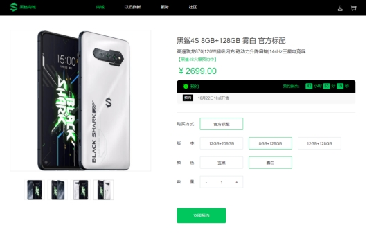 - 极致游戏体验,黑鲨4S系列再次开售全系2699元起