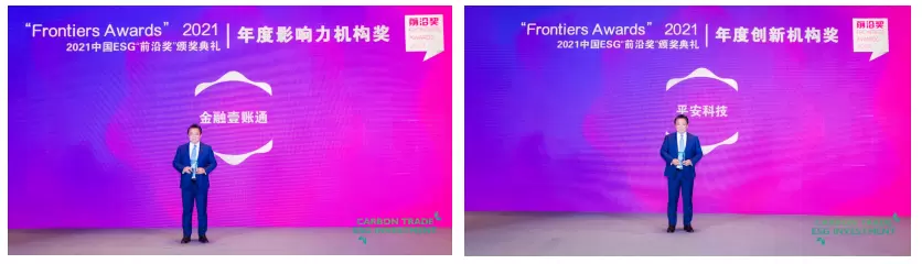 近日,在主题为“新时期,新机遇,新洞察”的2021中国碳交易与ESG投资峰会上,来自全球碳市场和ESG领域的权威机构及专家共同聚焦中国市场的机遇与挑战。平安科技知识图谱ESG产品创新组负责人诸世卓博士受邀出席峰会,并发表《建立中国特色ESG评级体系》的主题演讲。同时,在峰会当日的2021中国ESG“前沿奖”颁奖典礼上,平安集团联营公司金融壹账通获颁“年度影响力机构奖”,平安科技获颁“年度创新机构奖”。·