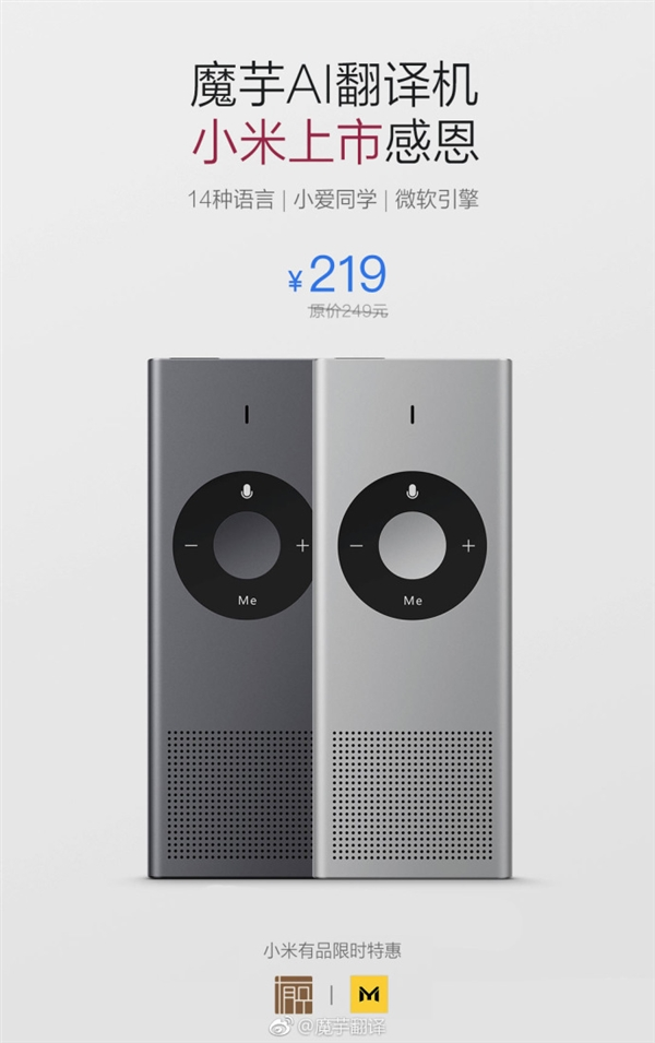 该翻译机市场价249元,现在在小米有品商城限时优惠30元,售价219元,7月17日0点活动结束,有需要的可以考虑下手了。