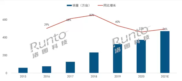 根据洛图科技(RUNTO)数据显示,2020年中国智能投影市场销量为372万台,同比增长15%,成为疫情下智能显示设备中为数不多逆势增长的品类。2021年全年预计销量逼近500万台,大幅增长25%以上,表现相当耀眼。