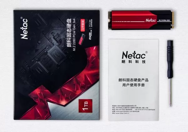 右上角是朗科“Netac”英文logo,显得很有辨识度。左下角则以醒目的红底白字方格突出这款产品的容量为1TB。