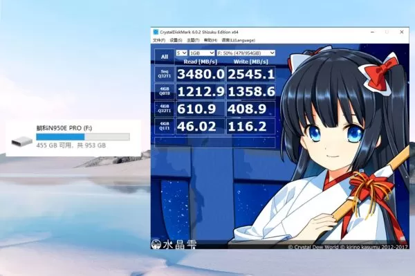 朗科N950E Pro配有硬核炫酷的铝合金马甲,给人带来视觉享受的同时又具有高效的散热水平,让硬盘在长时间使用时也能保持性能的稳定。同时,采用独立缓存能够极大提升硬盘的性能,让其在读写速度上有非常亮眼的表现。实际测得的读写速度高达3495.3MB/s和2646.9MB/s,甚至要比官方高出不少。而这样令人惊喜的性能表现让我们无论在文件传输、打开以及软件、游戏启动中都能享受到畅快体验。
