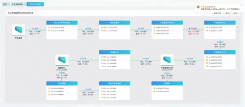 园区业务网:重点考虑业务系统端到端的网络性能,采用流量采集分析的方式,通过与CMDB以及NAT设备(防火墙或负载均衡)进行API对接获得服务器IP以及IP地址转换策略,自动关联会话,展示业务系统全流程画像,并显示此会话的网络状况,让客户清晰看到业务系统的网络态势。