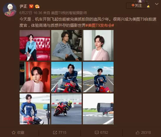 6月27日,美图手机在颐和园召开美图T9发布会,尹正作为美图T9自拍速度官出席发布会,并发布了一组用美图T9手机拍摄的时尚大片,帅气指数爆表。