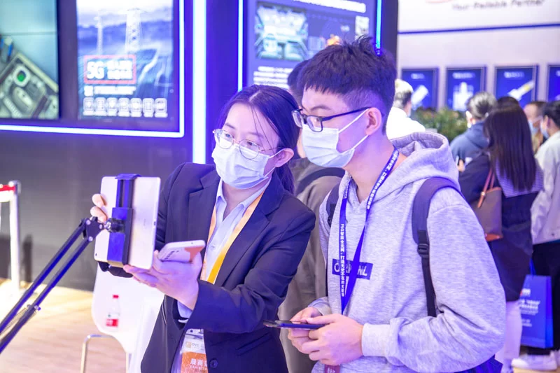 湖北移动展区吸引了众多参会人员前来零距离体验观看
