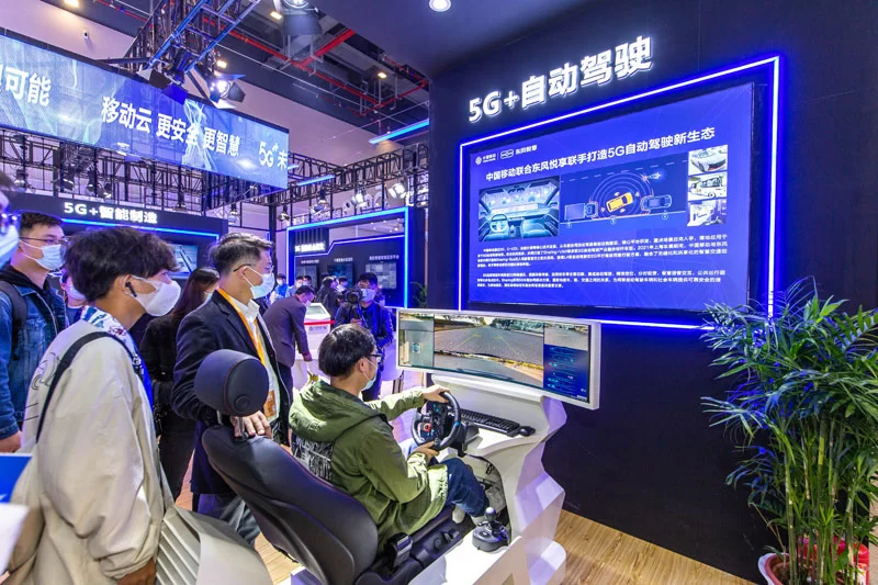 据移动工作人员介绍,位于互动体验区的5G远程驾驶是今年最受观众欢迎的项目,吸引了众多参会人员前来移动展区零距离体验观看。观众通过5G远程驾驶系统对远在东风悦享封闭测试路段的车辆进行实时监控与远程操控,当清扫车作业过程遇到障碍物、无法自主决策时,借助低延时5G网络,将车端视频感知结果实时回传至光博会现场。“太过瘾了,这种低延迟感与实地驾驶基本没有区别!”坐在控制中心体验远程驾驶操作的武汉市民陈先生不禁感叹道。