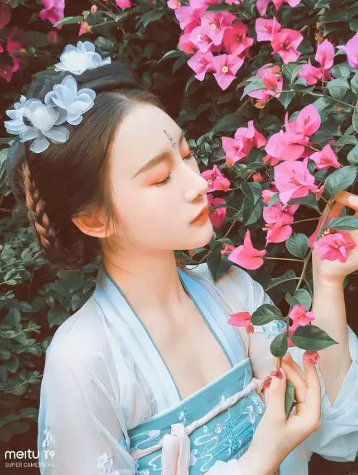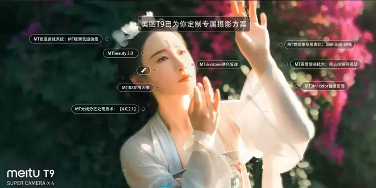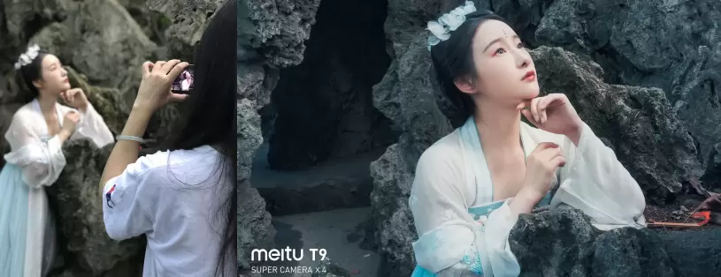 汉服摄影可不是一个光看脸就够了,除了智能美颜,美图T9全新的骨骼点识别技术,结合MTlab(美图影像实验室)大数据黄金比例算法,智能调整你的身材比例,实现更全面的人像美化,让你告别P图,实现“秒瘦”。尤其是在这样的汉服摄影中,更是可以将模特婀娜的身段完美的展现出来。
