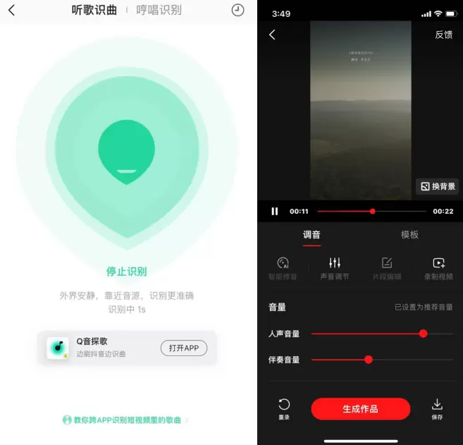QQ音乐听歌识曲和全民K歌智能修音功能