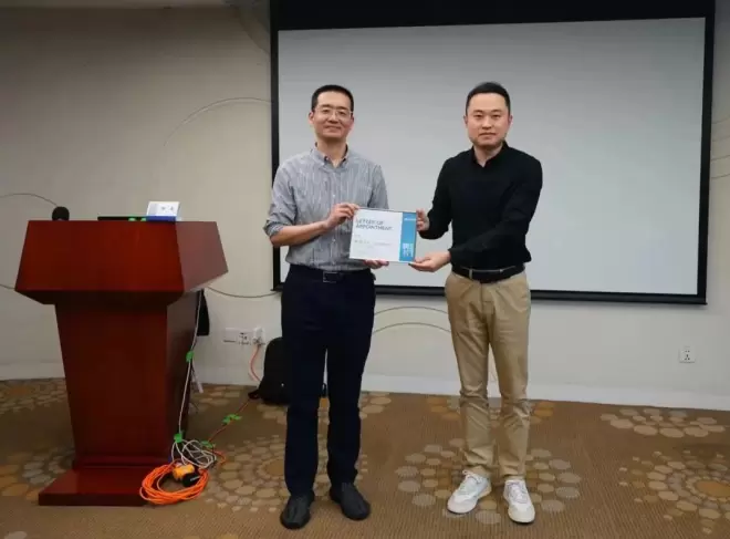 QQ音乐业务线技术副总裁周文江为西北工业大学人工智能领域专家谢磊颁发聘任证书