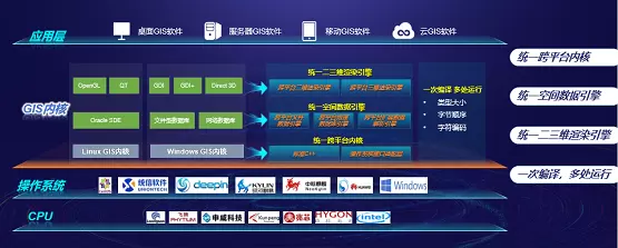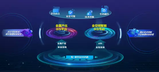 GIS平台软件作为信息化建设的基础软件,是国家信息化安全的重要基石,发展自主可控国产化技术和核心技术创新显得尤为重要。中地数码推出双轮驱动的产品战略,其内涵是基于统一的跨平台内核,实现全国产化体系架构和X86系统架构的“双轮驱动”,构建全国产化GIS平台和全空间智能化GIS平台两大自主可控产品,促进产业全面升级。