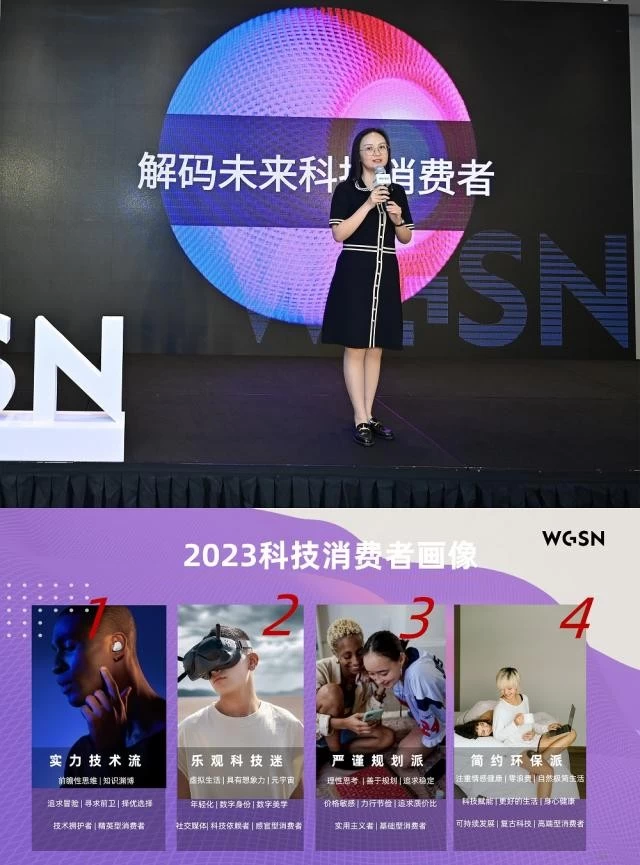 “在经历了前所未有的动荡和变化之后,WGSN总结出将在2023年出现的四大科技消费者角色:实力技术流、乐观科技迷、严谨规划派和简约环保派。这四大消费者角色并非单纯对应四类人群,而是体现了四套消费价值观,是消费者在经年挑战下所磨砺出的全新的生活能量和目标。为满足这些群体的需求,各大品牌现在就要做好准备。”