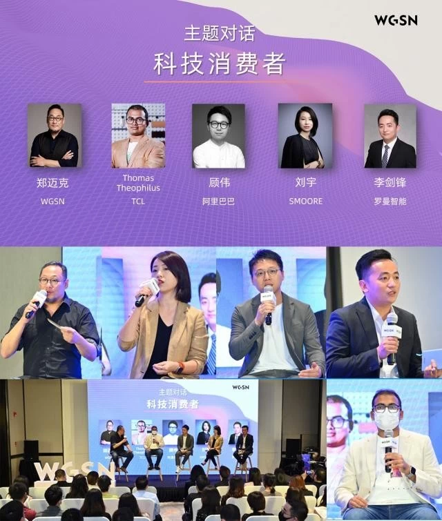 因此,在接下来的“科技消费者”主题对话环节,WGSN中国区战略渠道总监郑迈克先生以及TCL设计创新中心设计策略主管Thomas Theophilus先生、阿里巴巴商品设计孵化中心业务负责人顾伟先生、SMOORE APV事业部工业设计总监刘宇女士、罗曼智能电商新零售总经理李剑锋先生分别针对家电产品、个人科技产品、品牌电商新零售和电商平台在产品规划、市场营销和战略布局的过程中,各自产品或平台针对“消费者迭代”所带来的消费情绪、消费者价值观的转变所采取的对策。