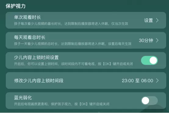 其次,云视听极光之所以拥有高人气还得益于它极具人性化的长辈模式与少儿模式,帮助众多家庭解决了困难,营造了更温馨的家庭氛围。在少儿模式下,家长可以设置闹钟,避免孩子长时间看电视影响视力,帮助孩子养成良好的习惯。此外,少儿模式开启后只会推送经过筛选后适合孩子的的安全适龄的内容。哪怕家长不在家也可以远程了解孩子的观影状态,呵护宝宝健康成长。